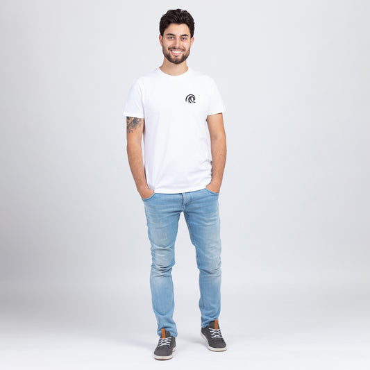 Locker getragen über dem offenen Neo, das Shirt erinnert an das, was unter der Oberfläche zählt.