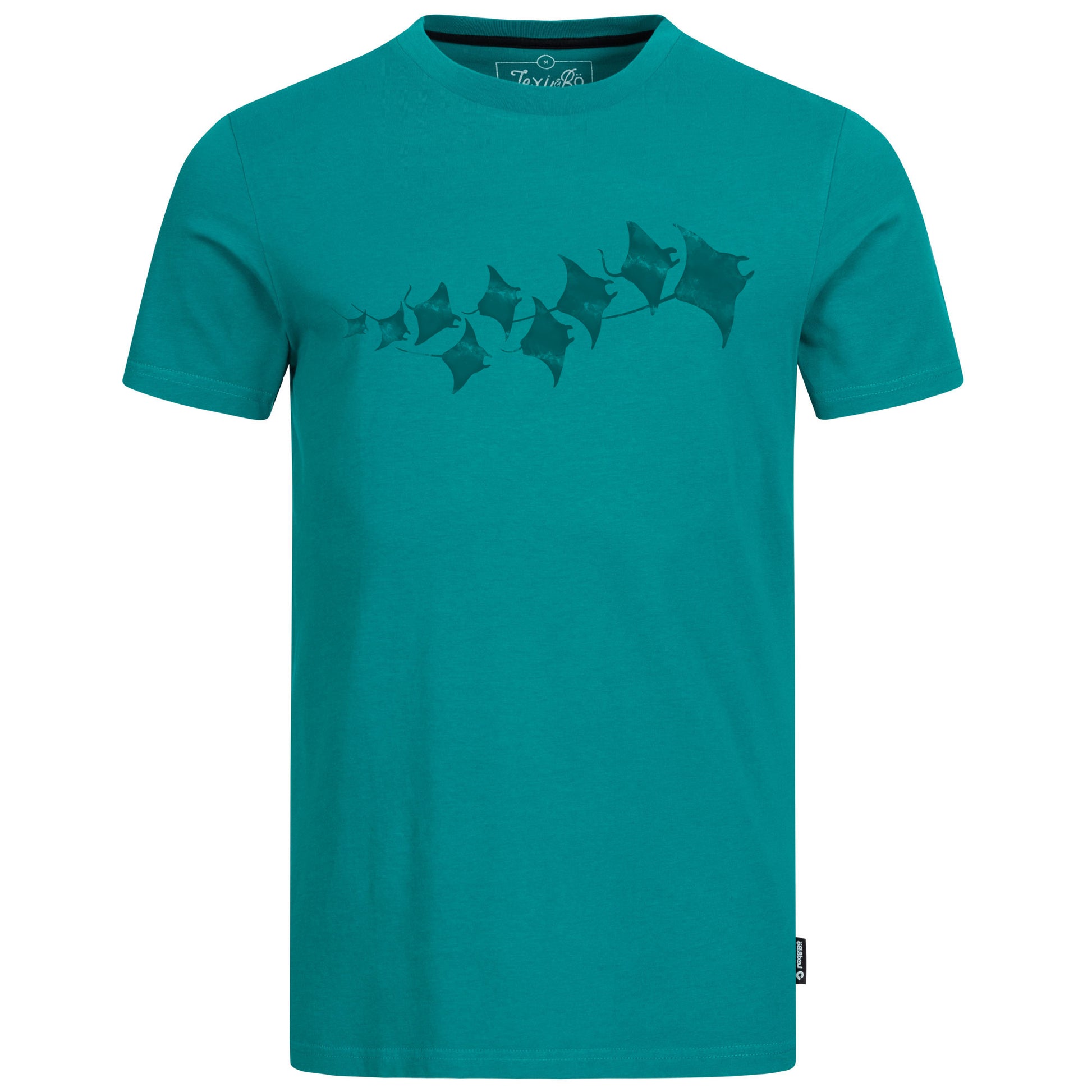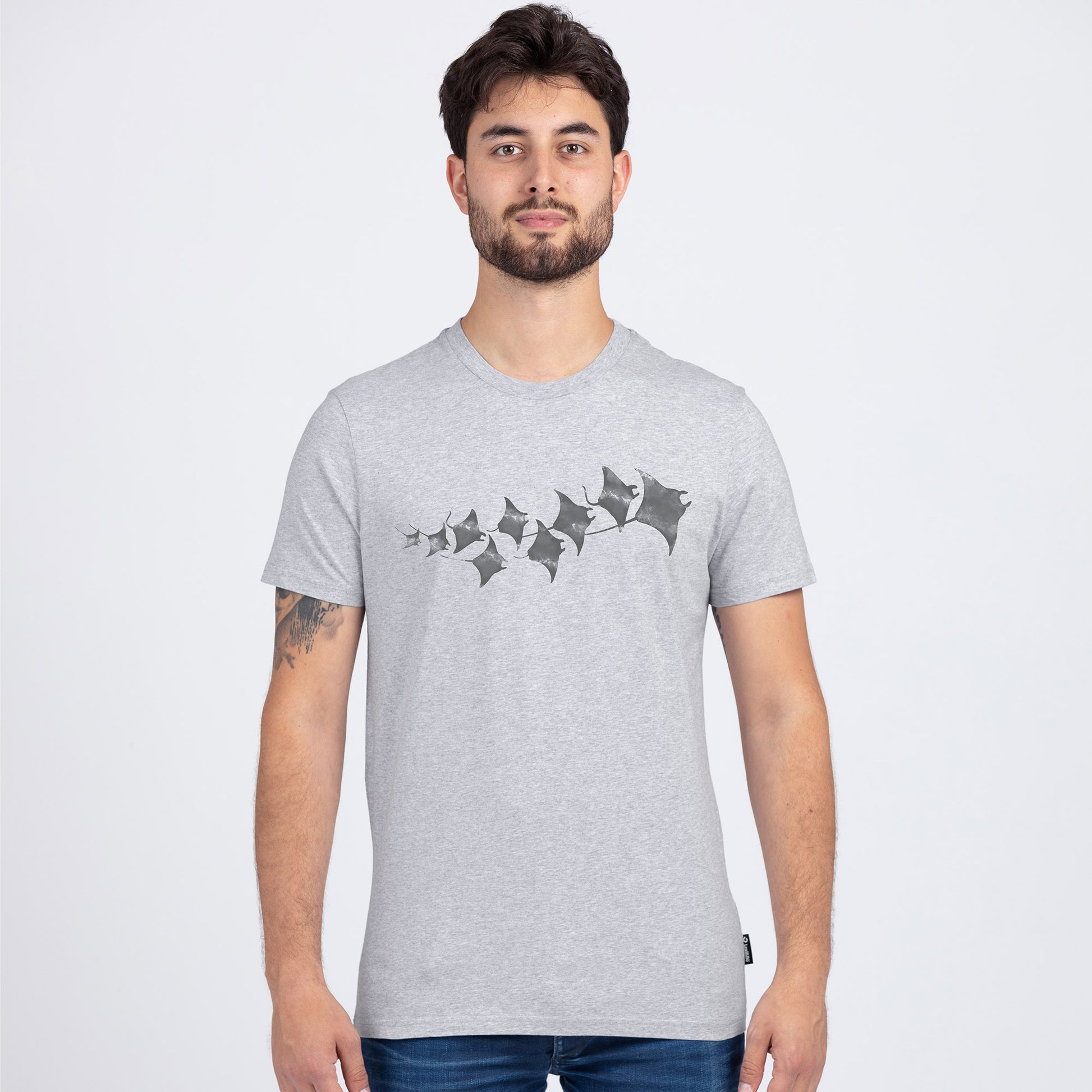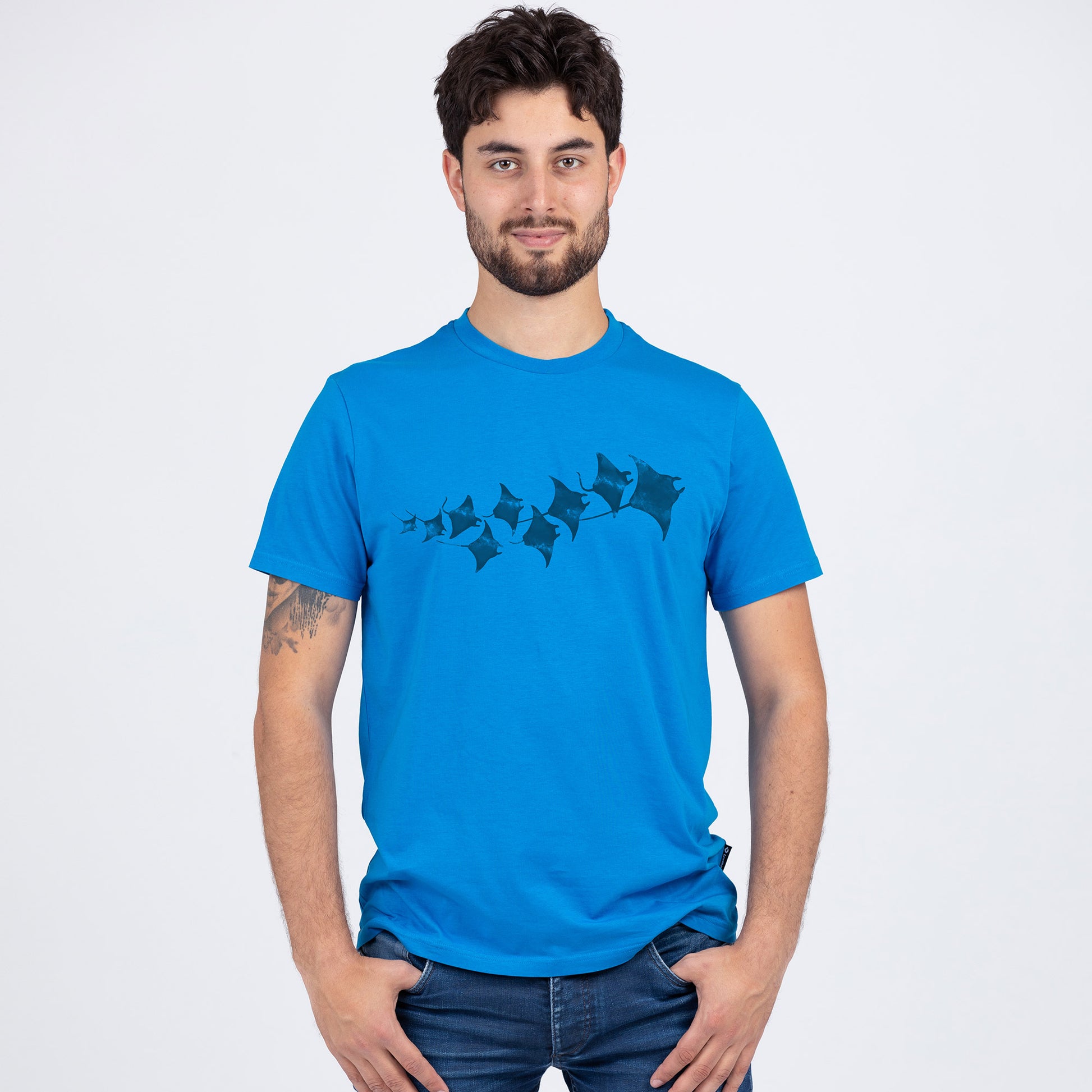Unser beliebtes Manta Rays T-Shirt für Herren in verschiedenen Farben bringt eine ordentliche Portion Ocean Feeling mit. Das große dunkle Motiv schwimmender Manta Rays im Wasserfarben-Look sticht sofort ins Auge. Die lockere Passform und der weiche Stoff aus 100 % Bio-Baumwolle Qualität sorgen für den optimalen Tragekomfort. Bis Größe L fällt das Shirt leicht tailliert aus. Der Rundhalsausschnitt ist leicht gerippt und so verstärkt, dass er nicht ausleiert. Das Front Design wurde im DTG-Verfahren mit 100 % umweltschonender, wasserbasierter Farbe gedruckt und ist frei von Chemikalien. Das ist nicht nur gut für die Umwelt, sondern auch für dich.